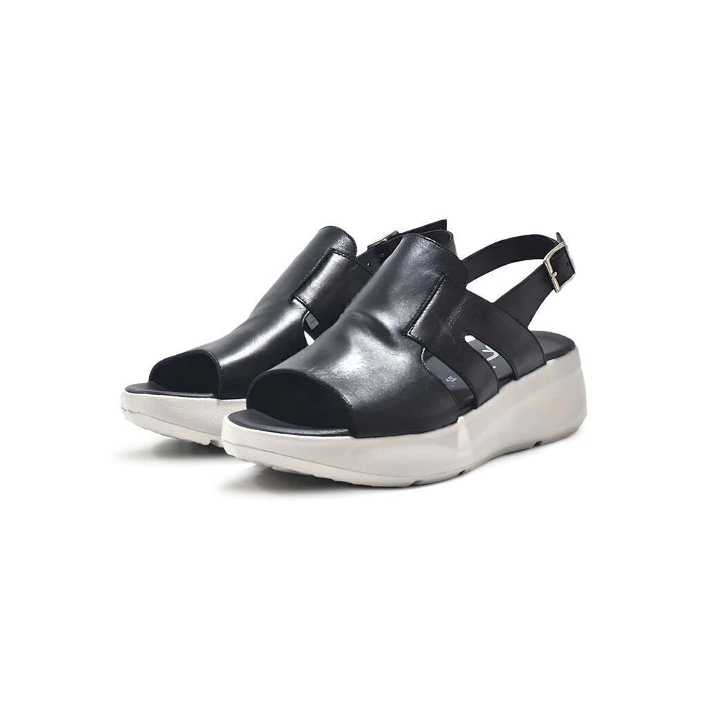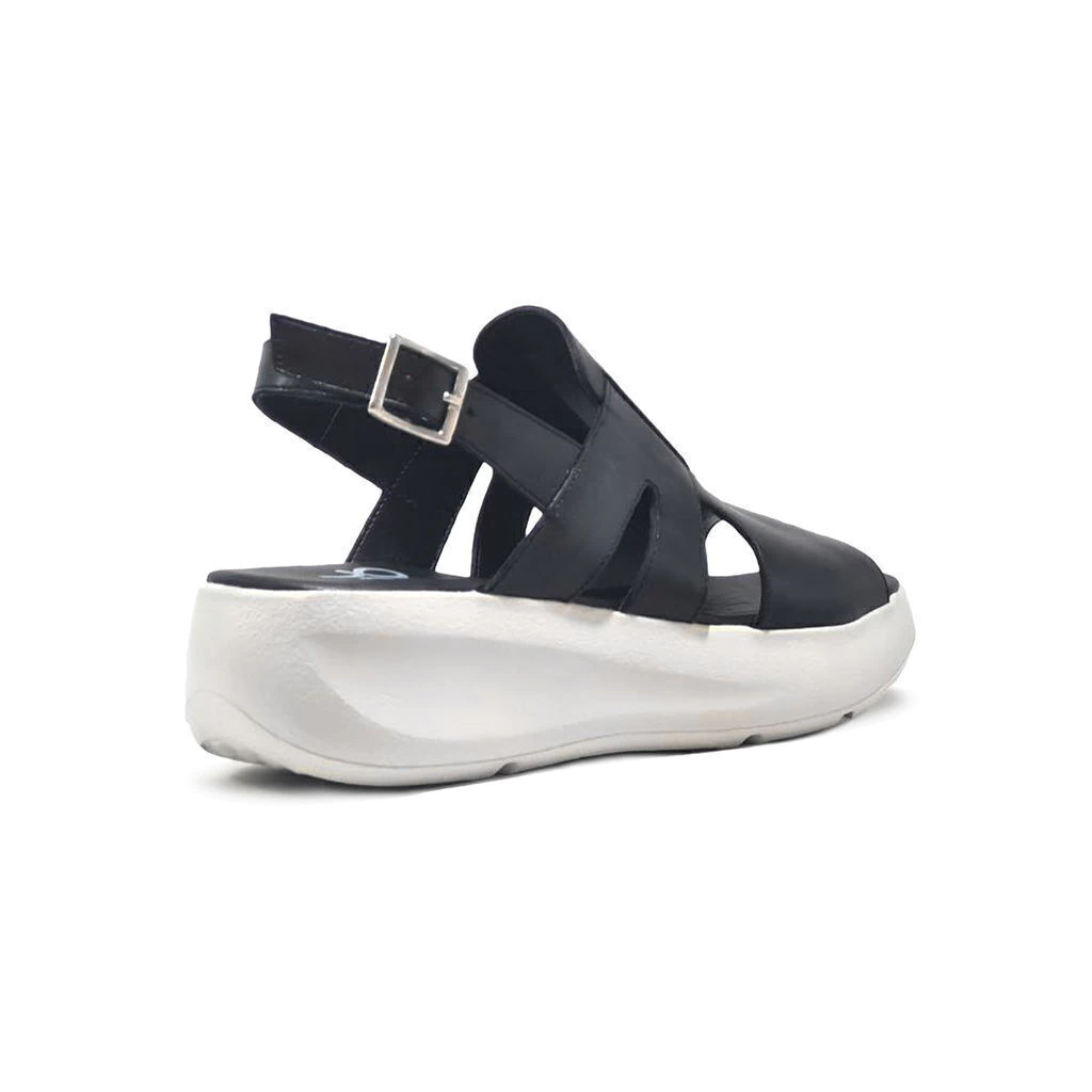 Descripción: La sandalia Gravagna 4125 presenta un diseño elegante y moderno. Su parte superior es de color negro con correas anchas y un cierre de hebilla alrededor del tobillo, proporcionando un ajuste seguro y cómodo. La suela es gruesa y blanca, con una ligera cuña que añade un toque de estilo y comodidad. El contraste entre la parte superior negra y la suela blanca la hace visualmente atractiva, ideal para combinar con diferentes atuendos.