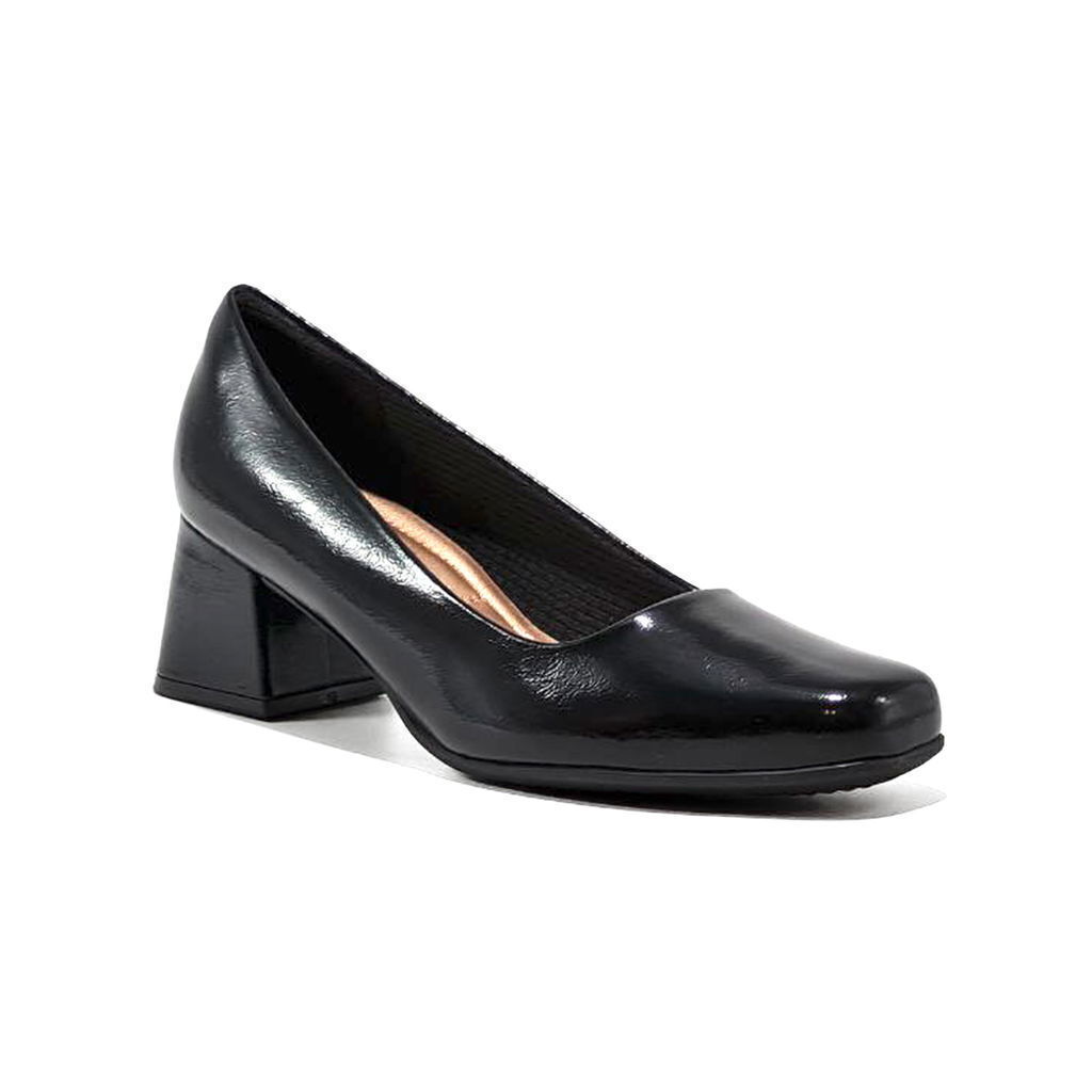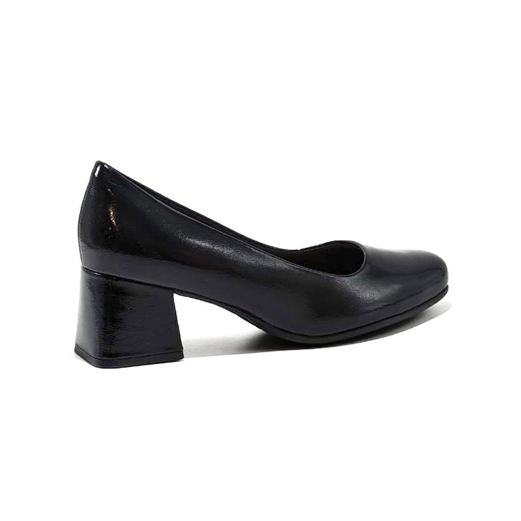 El zapato 748034 de la marca Piccadilly es un modelo elegante y versátil. En la imagen, se observa que es de color negro, con un diseño que combina diferentes texturas: la parte superior del zapato tiene un acabado texturizado, mientras que la punta y el tacón presentan un acabado brillante tipo charol.