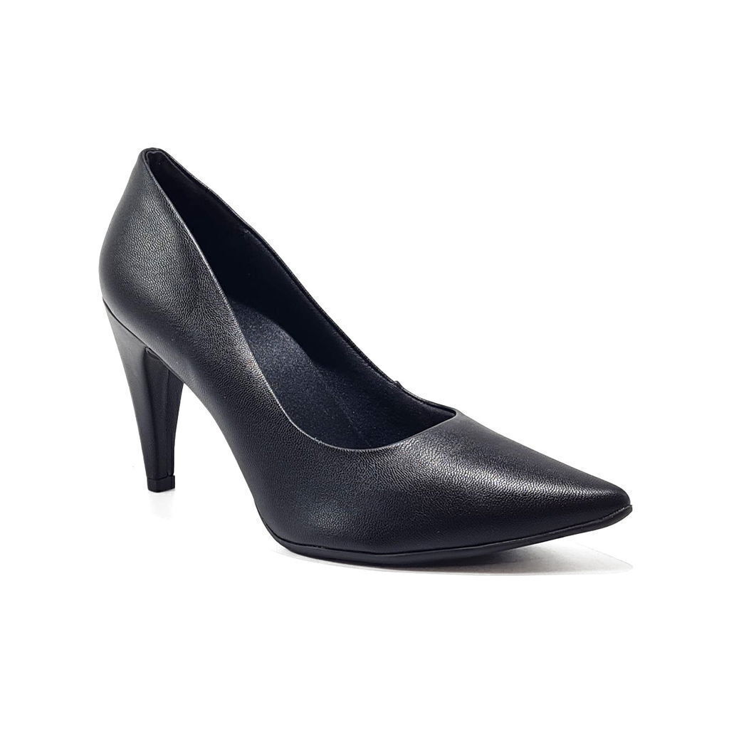 El zapato de tacón alto clásico de Piccadilly, con punta cerrada y un tacón de altura media. El material e un sintético similar al cuero, con una textura lisa y acabado mate. El zapato tiene un diseño elegante y sobrio, lo que podría indicar su idoneidad para ocasiones formales o entornos profesionales. No hay adornos ni decoraciones visibles, lo que enfatiza su estilo clásico.