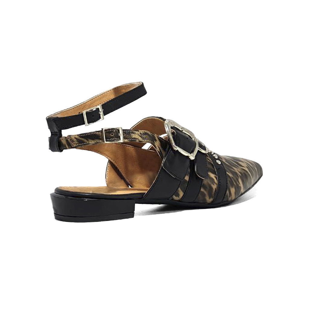 La chatita 1310 de la marca Valeria Mazza tiene un diseño de leopardo. Es un zapato plano con punta afilada y una correa en el tobillo con hebilla para ajustar. Este estilo y estampado la convierten en un artículo de moda interesante, ideal para quienes siguen las tendencias en calzado o son fanáticos de la marca Valeria Mazza.